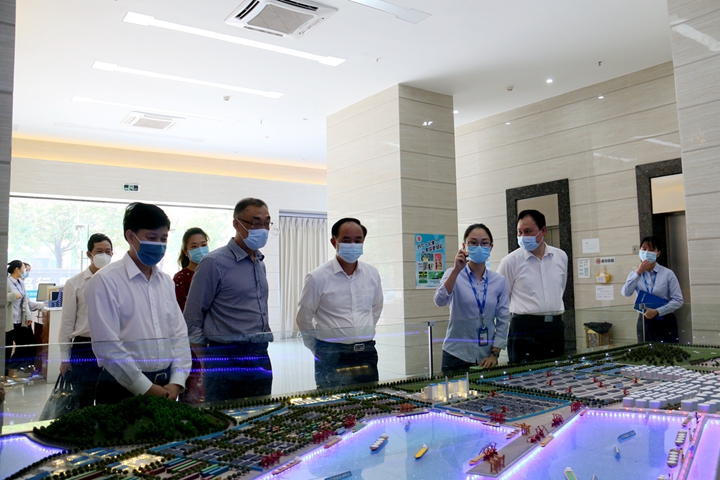 楊文波一行觀摩了博賀新港區(qū)總體規(guī)劃沙盤,詳細了解了博賀新港區(qū)總體規(guī)劃和在建的粵西LNG造陸、30萬噸原油碼頭、10萬噸級成品油碼頭等一批省、市重點項目的推進情況。