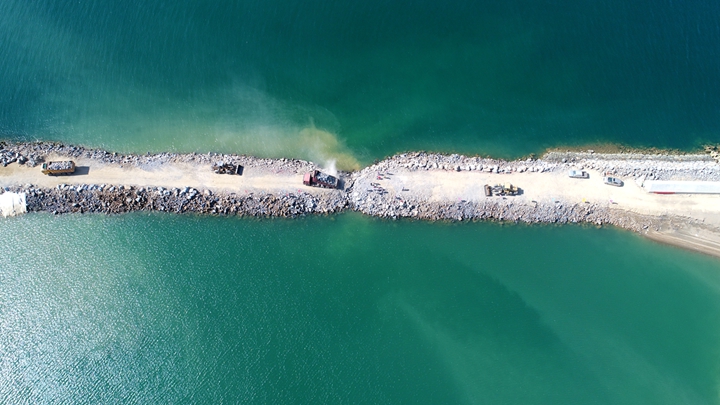 趙廣輝一行乘船深入博賀新港區(qū),實(shí)地調(diào)研10萬噸級(jí)成品油碼頭、30萬噸級(jí)原油碼頭、粵西LNG造陸項(xiàng)目建設(shè)進(jìn)展,認(rèn)真聽取了有關(guān)工作情況匯報(bào),研究部署下一步工作計(jì)劃,并重點(diǎn)對(duì)粵西LNG造陸項(xiàng)目的合攏情況進(jìn)行了考察。