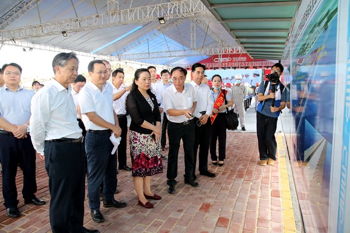 ▲集團(tuán)黨委書記、董事長劉乃英向市領(lǐng)導(dǎo)介紹重點(diǎn)項(xiàng)目建設(shè)推進(jìn)情況 舉辦這次動員大會,是茂名港集團(tuán)為了貫徹落實(shí)市委十一屆十一次全會和濱海新區(qū)抓項(xiàng)目穩(wěn)投資150天大會戰(zhàn)動員誓師大會精神,強(qiáng)化政治意識、大局意識、責(zé)任意識,堅(jiān)定理想信念,以時不我待的精神,只爭朝夕,真抓實(shí)干,確保市委全會精神落到實(shí)處的重要舉措之一。