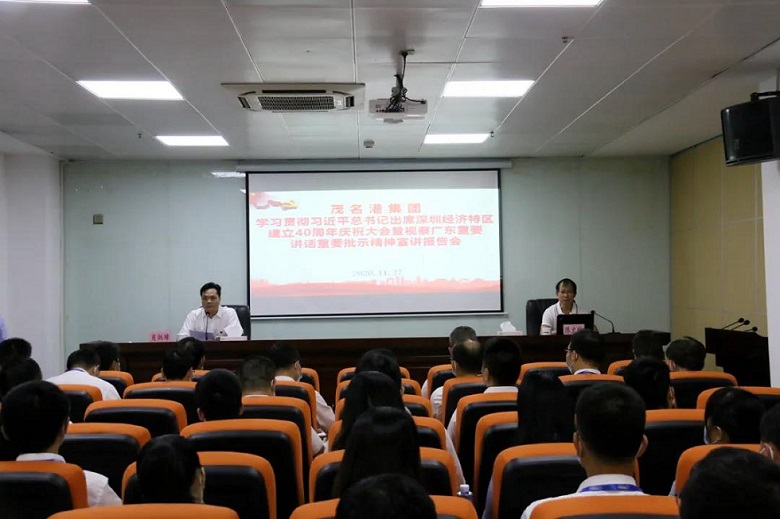 11月27日上午,茂名港集團舉辦學(xué)習(xí)貫徹習(xí)近平總書記出席深圳經(jīng)濟特區(qū)建立40周年慶祝大會和視察廣東重要講話、重要指示精神宣講報告會。報告會邀請茂名市委宣講團成員、市社科聯(lián)專職副主席陳文欽到會作了題為《以更大魄力在更高起點上推進改革開放》的宣講報告。集團黨委書記、董事長劉乃英、集團黨委副書記肖炳璋和集團機關(guān)各部室、各下屬企業(yè)黨員干部近90人參加了宣講會。