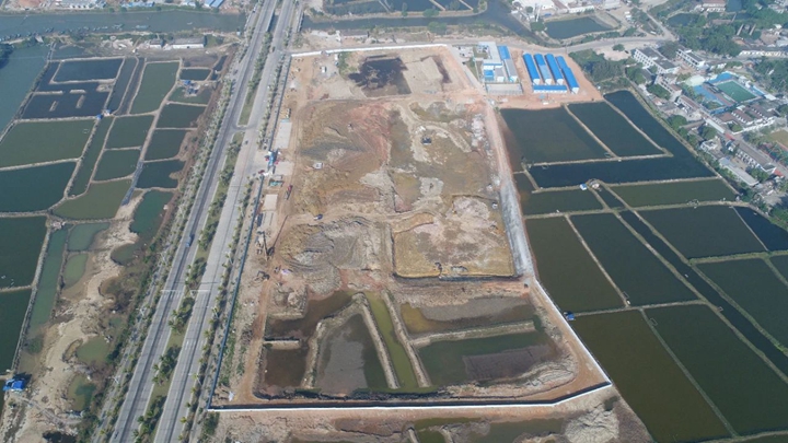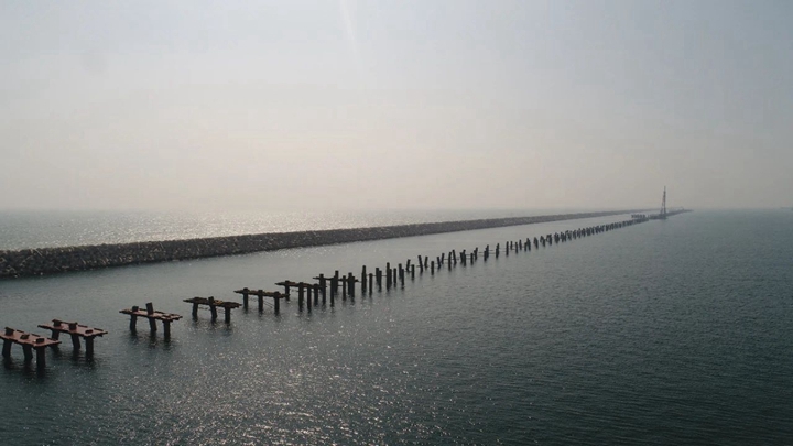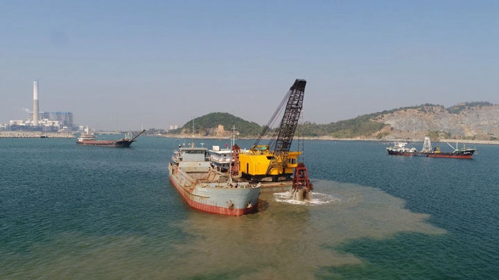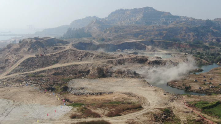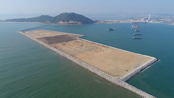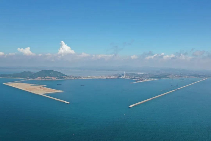 鳥(niǎo)瞰茂名港務(wù)中心施工現(xiàn)場(chǎng)