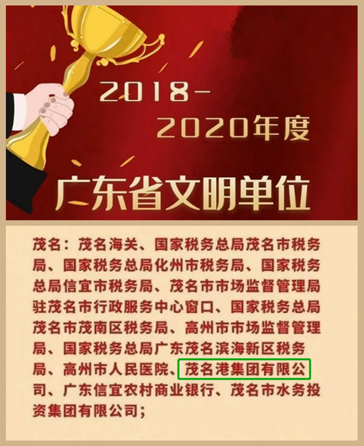 近日,廣東省精神文明建設(shè)表彰大會(huì)在廣州隆重舉行。作為成立僅八年多時(shí)間的市屬國(guó)有企業(yè),茂名港集團(tuán)榮獲廣東省2018-2020年度文明單位稱號(hào)。