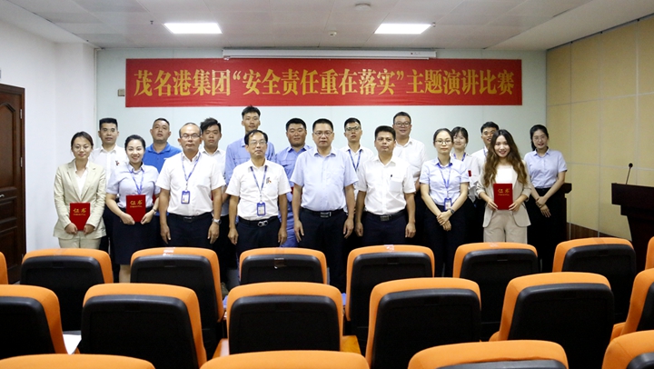 楊超燦對本次“安全責任重在落實”演講比賽給予充分肯定。他表示,本次比賽參與面廣,吸引了集團辦公室、財務部、投資發(fā)展部、工程管理部以及各下屬企業(yè)的的選手參加,擴大了安全宣講的影響力,充分體現(xiàn)了“安全工作人人有責”;各位選手演講時神抖擻,內(nèi)容切合工作實際,言之有物,充分展現(xiàn)了茂名港人昂揚向上的良好精神風貌。他強調(diào),今年是集團重點項目建設的關(guān)鍵之年,我們要堅定信心,認真學習本次演講主題“安全責任重在落實”的內(nèi)涵,把安全責任落實到每個環(huán)節(jié)、每個崗位、每個人,做到“守土有責、守土負責、守土盡責”,助力集團生產(chǎn)運營、項目建設、疫情防控等各項工作取得成效,夯實本質(zhì)安全基礎(chǔ),推動集團安全生產(chǎn)形勢持續(xù)穩(wěn)定向好。 評委們與參賽選手們合影 ↓↓