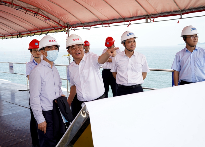 陳林夕一行深入到茂名港博賀新港區(qū),實地考察了茂名港博賀新港區(qū)各省市重點項目的推進情況。考察中,陳林夕對博賀新港區(qū)宏大的總體規(guī)劃和蓬勃的發(fā)展態(tài)勢表示贊嘆。他表示,港口建設事關(guān)茂名市經(jīng)濟建設的百年大計,茂名港集團作為市屬企業(yè)的“排頭兵”,發(fā)展前景十分廣闊,擁有較好的發(fā)展?jié)摿皡^(qū)位資源優(yōu)勢。他希望,以本次調(diào)研為契機,充分發(fā)揮國家開發(fā)銀行金融服務優(yōu)勢,以茂名港集團重點項目為抓手,建立緊密的合作關(guān)系,提供契合集團發(fā)展方向的創(chuàng)新金融服務,攜手茂名港集團實現(xiàn)互利共贏,共同推動茂名地區(qū)經(jīng)濟發(fā)展。