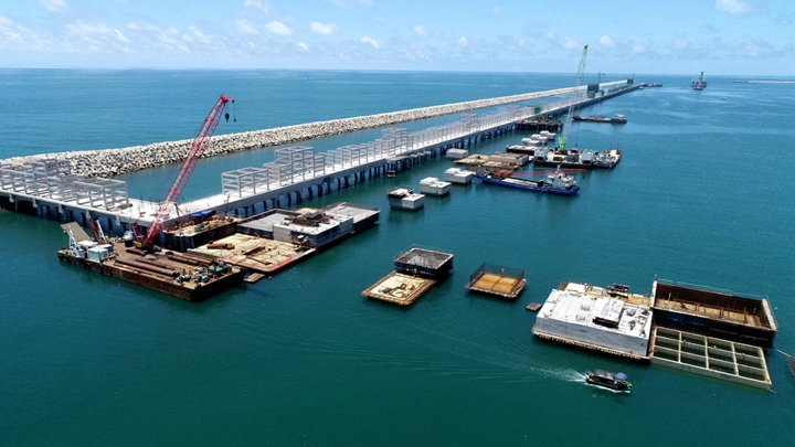 據(jù)悉,集團茂名港博賀新港區(qū)東區(qū)油品碼頭工程已具規(guī)模,碼頭沉箱安裝、陸域公用管廊、工作樓及水域面層已完成,水域管廊、管架及工藝管道安裝快速推進,項目總體進度完成92%;