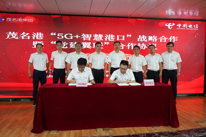 9月7日,茂名港集團與茂名電信舉辦“5G+智慧港口”戰(zhàn)略合作簽約暨“黨建翼聯(lián)”黨組織結(jié)對共建合作簽約儀式,雙方將探索共建茂名港智慧港口5G標桿項目,全面提升茂名港數(shù)字化運營能力。茂名港集團黨委書記、董事長王志華,中國電信茂名分公司黨委書記、總經(jīng)理李圣祥,副總經(jīng)理馮光星、胡榮臻等出席儀式,并見證《5G+智慧港口戰(zhàn)略合作協(xié)議》《黨建翼聯(lián)黨組織結(jié)對共建合作協(xié)議》的簽訂。