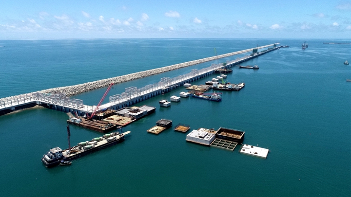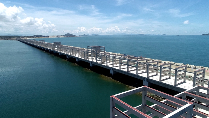 ▲茂名港務中心項目 在這乘風破浪、跨越發(fā)展的十年里,茂名港深水大港崢嶸初現(xiàn),碩果累累——實現(xiàn)資產規(guī)模和融資規(guī)!半p百”目標,為濱海新區(qū)基礎設施建設和茂名港集團發(fā)展提供資金保障,融資平臺作用凸顯;自建、參建省市重點項目超30個,推動博賀新港區(qū)東西防波堤、10萬噸級成品油碼頭、東區(qū)化工碼頭、東區(qū)化工倉儲、粵西LNG造陸項目、茂名港務中心、博賀灣大橋、供水工程等一批省市重點項目建設投用,充分發(fā)揮濱海新區(qū)項目建設主體作用,加快推進口岸開放工作,為茂名經濟實現(xiàn)高質量發(fā)展增添動力。 前瞻布局,打造南海能源新通道,積極融入茂名“向海而興”發(fā)展大局。