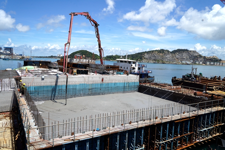▲東區(qū)化工碼頭項目胸墻澆筑作業(yè) 集團當前在建的10萬噸級成品油碼頭、東區(qū)化工碼頭等碼頭泊位建設進入沖刺階段,認真貫徹市委市政府關于加快口岸開放工作的要求,計劃今年竣工驗收;茂名港務中心已完成主體結構施工,計劃今年建成投用,將為濱海新區(qū)樹立嶄新地標;30萬噸級原油碼頭報批報建工作取得重大突破,項目岸線申請獲得國家交通運輸部批復,前期工作不斷加快推進,即將進入實質性實施階段,現(xiàn)代化深水大港的畫卷徐徐展開。 挖潛增效,劃轉老國企扭虧為盈,實現(xiàn)國有資產保值增值。