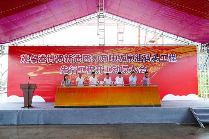 張有欽指出,茂名港博賀新港區(qū)30萬噸級原油碼頭工程先行工程開工動員活動是落實市委、市政府“建深水大港、興濱海綠城”發(fā)展戰(zhàn)略工作部署的具體行動,將有力推動濱海新區(qū)打造千億級臨港產(chǎn)業(yè)集群。希望茂名港集團在確保質(zhì)量安全的前提下,力爭30萬噸級原油碼頭項目早日建成投產(chǎn),為茂名市、濱海新區(qū)高質(zhì)量發(fā)展夯實基礎(chǔ)、積蓄后勁。濱海新區(qū)各相關(guān)部門要強化大局意識、服務(wù)意識、責(zé)任意識和協(xié)作意識,優(yōu)化建設(shè)環(huán)境、提高行政效能,積極主動做好協(xié)調(diào)服務(wù),幫助解決困難和問題,確保項目順利實施、加快建設(shè)。 王志華表示,茂名港博賀新港區(qū)30萬噸級原油碼頭工程是茂名港進一步提升港口等級的標(biāo)志性工程,對完善博賀新港區(qū)碼頭布局、豐富港口服務(wù)功能、提升港口競爭力具有重要意義。他要求,集團上下要以這次動員大會為新的起點,全力推進全年重點項目建設(shè)目標(biāo)圓滿完成。一是堅定信心,提高政治站位,要緊緊圍繞“建深水大港、興濱海綠城”發(fā)展戰(zhàn)略,切實增強抓項目穩(wěn)發(fā)展的責(zé)任感緊迫感,把思想統(tǒng)一到全市抓項目促投資150天大會戰(zhàn)動員會議的工作部署上來,加快推進30萬噸級原油碼頭順利實施。二是真抓實干,積極主動作為,按照市委、市政府關(guān)于茂名港口岸擴大開放工作部署,集中力量,細化量化推進項目流程和節(jié)點任務(wù),全力推進博賀新港區(qū)碼頭建設(shè),確保全面完成各項目建設(shè)目標(biāo),助力茂名港順利實現(xiàn)口岸擴大開放。三是加強黨的領(lǐng)導(dǎo),樹牢廉政風(fēng)險防范意識,強化底線思維和紅線意識,以優(yōu)良作風(fēng)推動項目建設(shè),以項目建設(shè)錘煉干部作風(fēng),努力打造茂名港口建設(shè)的優(yōu)質(zhì)工程、廉潔工程,推動茂名港集團高質(zhì)量發(fā)展。 程志磊表示,中交一航局二公司將秉承“寧讓汗水漂起船、不讓工期拖一天”的光榮傳統(tǒng),堅決扛起央企政治責(zé)任,全面貫徹落實各項工作要求,集中優(yōu)質(zhì)資源、調(diào)集精干力量,發(fā)揮技術(shù)、裝備和人才優(yōu)勢,嚴把工程安全關(guān)、質(zhì)量關(guān)、進度關(guān),確保茂名港博賀新港區(qū)30萬噸級原油碼頭項目早日建成投產(chǎn),為茂名現(xiàn)代化濱海城市建設(shè)貢獻力量!
