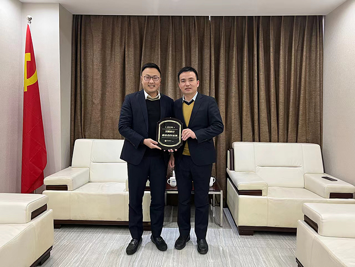 ▲與中國農(nóng)業(yè)銀行茂名分行行長(zhǎng)陳飛亮授牌合影