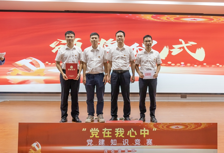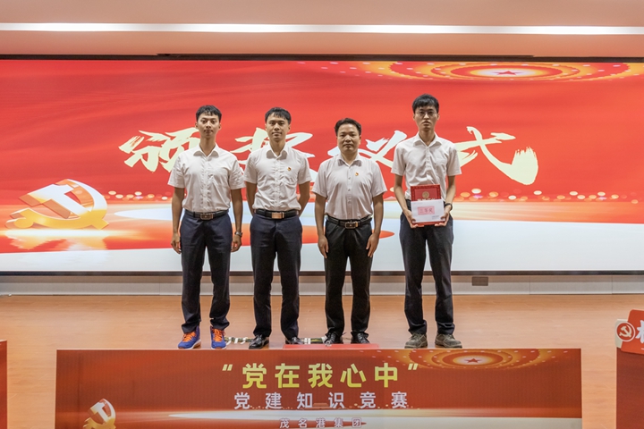 機關先鋒隊、物業(yè)勇闖隊、港口沖鋒隊、王港挑戰(zhàn)隊榮獲優(yōu)秀獎 在陣陣掌聲中,集團領導為獲獎隊伍頒發(fā)了榮譽證書并進行合影留念。 整場競賽精彩紛呈,氣氛熱烈,選手之間通力合作,場上比分你追我趕,大家“賽”出了水平,“競”出了風采,充分體現(xiàn)了茂名港人積極奮進,努力拼搏的精神。集團黨員干部以此為契機,養(yǎng)成自學、好學的習慣,持之以恒、與時俱進的學習,避免知識老化、思想僵化、能力退化,在各自的崗位上掌握新方法、增長新才干、解決新問題,把習近平新時代中國特色社會主義思想轉化為堅定理想、錘煉黨性和指導實踐、推動工作的強大力量,營造了全集團風清氣正、積極向上、斗志昂揚的干事氛圍。