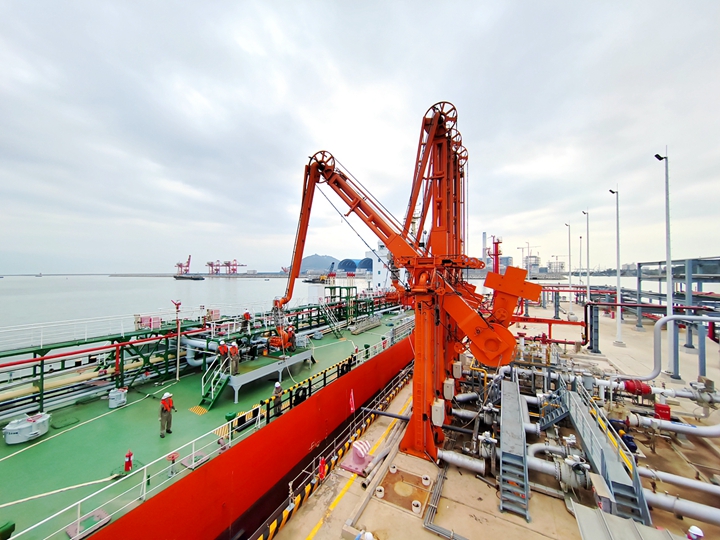 據(jù)悉,“昌利28號”船長137米,船寬19米,最大吃水8.1米,載重11800噸。當(dāng)天13時10分成功靠泊E10號泊位,15時25分成功靠泊E12號泊位。 長興石化公司黨支部高度重視此次試靠泊,船舶到港前,組織專人提前與船方溝通,召開協(xié)調(diào)會,探討分析并制定靠泊方案,從細(xì)節(jié)入手,將每一個環(huán)節(jié)落到實(shí)處。安排黨員突擊隊隊員對一線班組人員進(jìn)行靠泊方案培訓(xùn),提前兩天進(jìn)行桌面推演,確?坎戳鞒倘f無一失?坎催^程中,人員密切配合,通過拉纜、解纜幫助船舶靠岸和離岸,并將登船梯順利放置在船舶甲板上,便于雙方人員通行;成功測試激光輔助靠泊系統(tǒng)和溢油檢測系統(tǒng);成功將輸油臂與船方管道對接并對管道進(jìn)行氣密性測驗(yàn)。此次成功靠泊積累了寶貴的生產(chǎn)經(jīng)驗(yàn),為后續(xù)正式投產(chǎn)運(yùn)營打下堅實(shí)的基礎(chǔ)。 長興石化公司黨支部將繼續(xù)在茂名港集團(tuán)黨委的堅強(qiáng)領(lǐng)導(dǎo)下,高舉習(xí)近平新時代中國特色社會主義思想偉大旗幟,繼續(xù)發(fā)揮黨支部戰(zhàn)斗堡壘作用,做到以高質(zhì)量黨建引領(lǐng)生產(chǎn)運(yùn)營,奮力開創(chuàng)長興石化公司發(fā)展新局面。