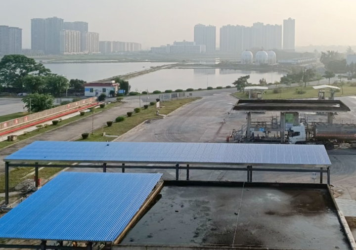 據(jù)悉,2#油庫卸車臺(tái)露天雨棚的搭建,旨在保護(hù)卸車作業(yè)免受惡劣天氣影響,確保油品在裝卸過程中的質(zhì)量與安全。雨棚的建成不僅為作業(yè)人員提供了良好的工作環(huán)境,也有效減少了雨水對(duì)油品質(zhì)量的影響和對(duì)生產(chǎn)設(shè)備的潛在損耗;同時(shí)兼顧美觀性,使之成為庫區(qū)一道亮麗的風(fēng)景線。