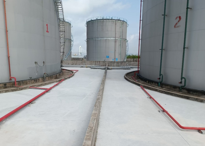 1#、2#、3#油罐區(qū)的硬底化工程也是本次優(yōu)化建設(shè)的重要一環(huán)。通過對(duì)油罐區(qū)地面進(jìn)行硬化處理,增強(qiáng)了地面的承載能力和抗?jié)B性能,同時(shí)各油罐間防火堤的完工,為庫區(qū)提供了安全可靠的防火保障。
