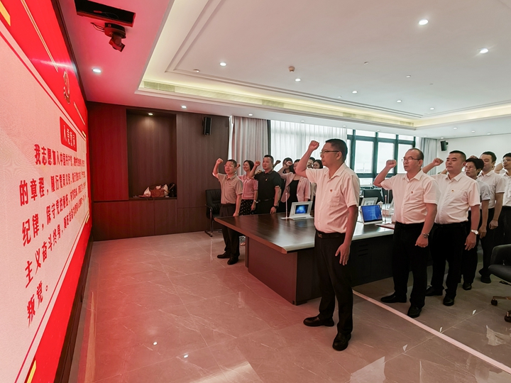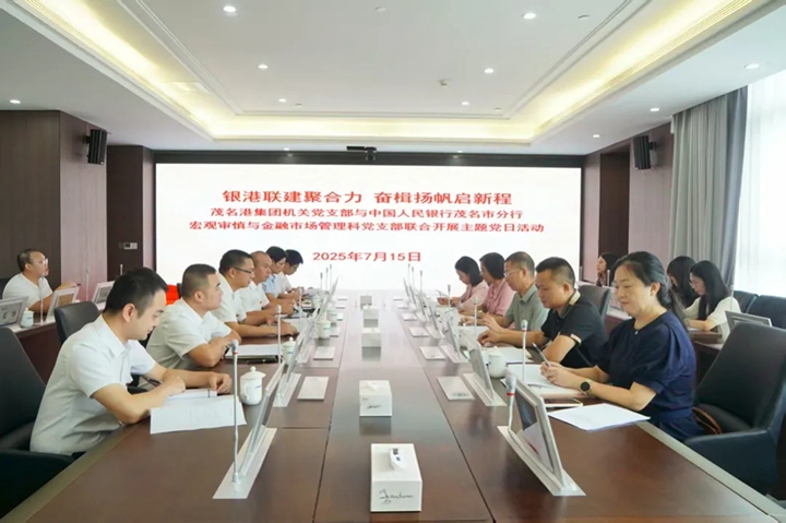 為深入學(xué)習(xí)貫徹習(xí)近平新時代中國特色社會主義思想,進(jìn)一步加強黨建引領(lǐng),推動黨建與業(yè)務(wù)深度融合,7月15日,茂名港集團(tuán)機關(guān)黨支部與中國人民銀行茂名市分行宏觀審慎與金融市場管理科黨支部、國家外匯管理局茂名市分局黨總支聯(lián)合開展了主題黨日活動。中國人民銀行茂名市分行二級調(diào)研員嚴(yán)青,集團(tuán)黨委委員、副總裁楊超燦以及雙方黨支部書記、黨員代表共20余人參加活動。