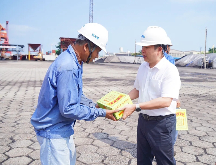 近日,茂名港集團工會主席馬云青率隊開展“送清涼”慰問活動。慰問組先后走訪了集團港區(qū)生活區(qū)、中油王港公司庫區(qū)、港口經(jīng)營公司碼頭作業(yè)現(xiàn)場、中機科技公司生產(chǎn)現(xiàn)場等地,為高溫下堅守崗位的一線操作職工、重點項目職工等送去清涼與關(guān)懷。集團副總裁李昱祺及相關(guān)下屬企業(yè)負責(zé)人參加活動。