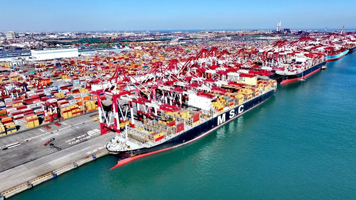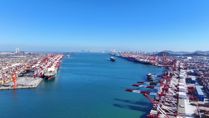 在建成全國(guó)首座全國(guó)產(chǎn)全自主自動(dòng)化碼頭基礎(chǔ)上,青島港加速智慧港口迭代升級(jí),推動(dòng)人工智能應(yīng)用中試基地成果轉(zhuǎn)化。今年以來,持續(xù)優(yōu)化、推廣自主研發(fā)的A-TOS(碼頭智能管控系統(tǒng)),13次刷新自動(dòng)化碼頭裝卸效率世界紀(jì)錄;推進(jìn)傳統(tǒng)碼頭自動(dòng)化改造,通過研發(fā)碼頭智能體、攻關(guān)自動(dòng)化裝卸關(guān)鍵技術(shù),實(shí)現(xiàn)全場(chǎng)景、全流程、全機(jī)種自動(dòng)化,助力集裝箱、紙漿、鐵礦石、糧食等貨種接連打破效率紀(jì)錄;打造“云港通”口岸線上服務(wù)平臺(tái),實(shí)現(xiàn)“關(guān)港通”智慧查驗(yàn),應(yīng)用全球首個(gè)港口服務(wù)大模型方舟TaaS,進(jìn)一步提升了裝卸作業(yè)的服務(wù)體驗(yàn)和決策效率。 智慧港口效率的提升離不開海關(guān)監(jiān)管服務(wù)的升級(jí)保障。青島海關(guān)充分發(fā)揮山東港口青島港在‘一帶一路’中的陸;ヂ(lián)優(yōu)勢(shì),推廣“先期機(jī)檢”“抵港直裝”“船邊直提”等自動(dòng)化作業(yè)模式,通過升級(jí)升級(jí)智能空軌、集裝箱順勢(shì)核重等智能化設(shè)施設(shè)備,將海關(guān)監(jiān)管無(wú)縫嵌入港口生產(chǎn)作業(yè),實(shí)現(xiàn)了海關(guān)與港口物流信息交互,為外貿(mào)企業(yè)打造了一條綠色、高效的出海物流通道。