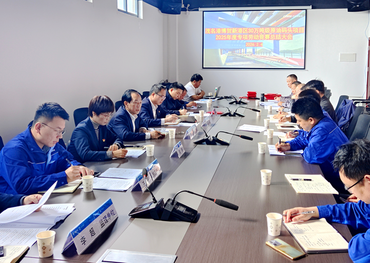 為全面總結(jié)2025年“黨建引領(lǐng)聚合力,書記項(xiàng)目顯成效,促項(xiàng)目保交工”勞動競賽取得的豐碩成果,表彰在項(xiàng)目建設(shè)中涌現(xiàn)的先進(jìn)典型,2月4日,茂名港博賀新港區(qū)30萬噸級原油碼頭項(xiàng)目召開2025年度專項(xiàng)勞動競賽總結(jié)表彰大會。集團(tuán)黨委委員、總工程師蔡光章出席會議并講話,集團(tuán)黨群工作部相關(guān)負(fù)責(zé)人陪同參加。