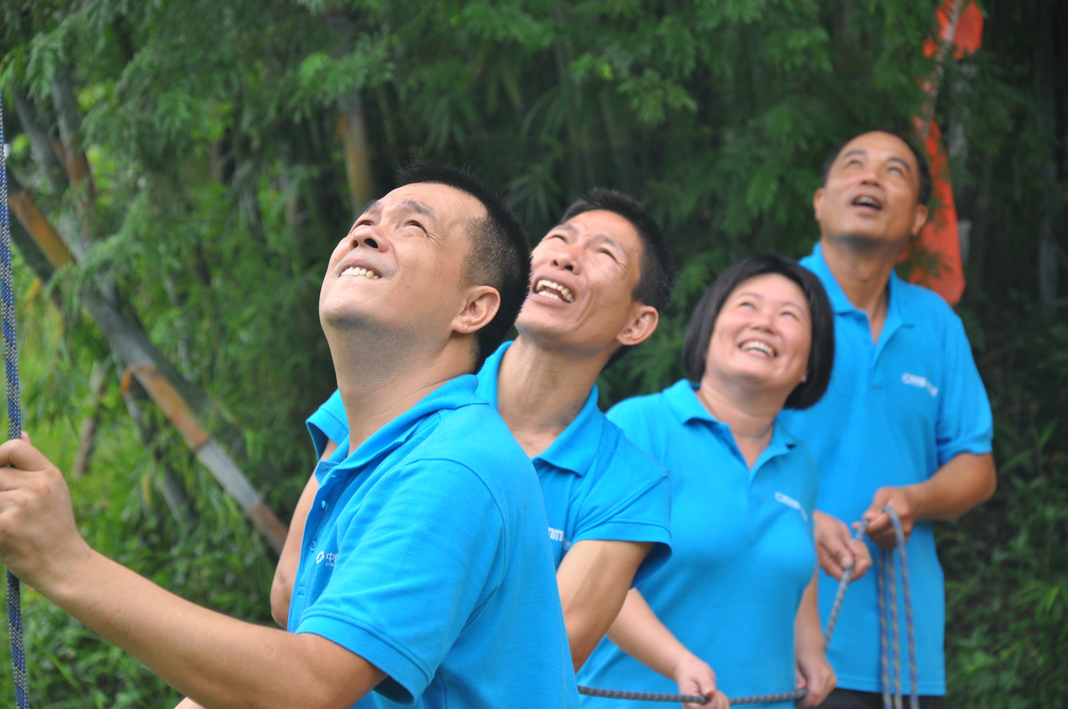 17日,在拓展教練的組織下,拓展活動訓(xùn)練營正式開始;顒右云髽I(yè)文化融入為主線,先后通過開展“共同進(jìn)退”“穿越電網(wǎng)”“高空項目”“七巧板”“勝利墻”等項目,以體驗式培訓(xùn)的方式讓每一為參訓(xùn)員工了解領(lǐng)悟團(tuán)隊與個人、責(zé)任與使命的關(guān)系,引導(dǎo)員工樹立團(tuán)隊意識,培養(yǎng)團(tuán)隊信任,促成團(tuán)隊溝通,并通過體驗活動逐步導(dǎo)入茂名港集團(tuán)企業(yè)文化,促成了企業(yè)文化深入人心。